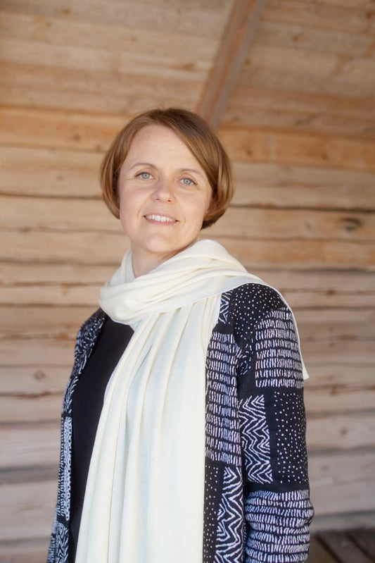 Kaulahuivi, merinovilla, luonnonvalkoinen